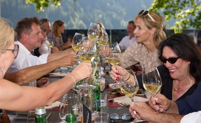 Auf der Terrasse vom Clubrestaurant können Sie dann ganz gemütlich bei einem Glaserl Wein die Woche Revue passieren lassen.